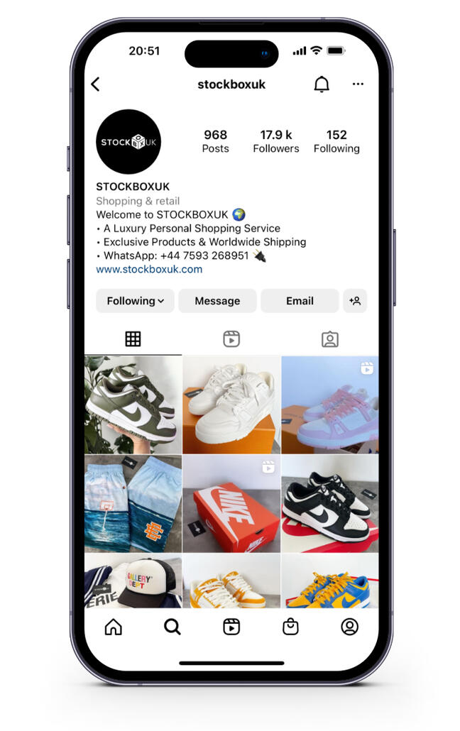 Providing a personal shopping service for clients worldwide. Specialising in sourcing exclusive products and hassle free shopping. STOCKBOXUK is linked into a network of thousands of buyers and sellers worldwide for clothing and footwear.View our Instagram here.